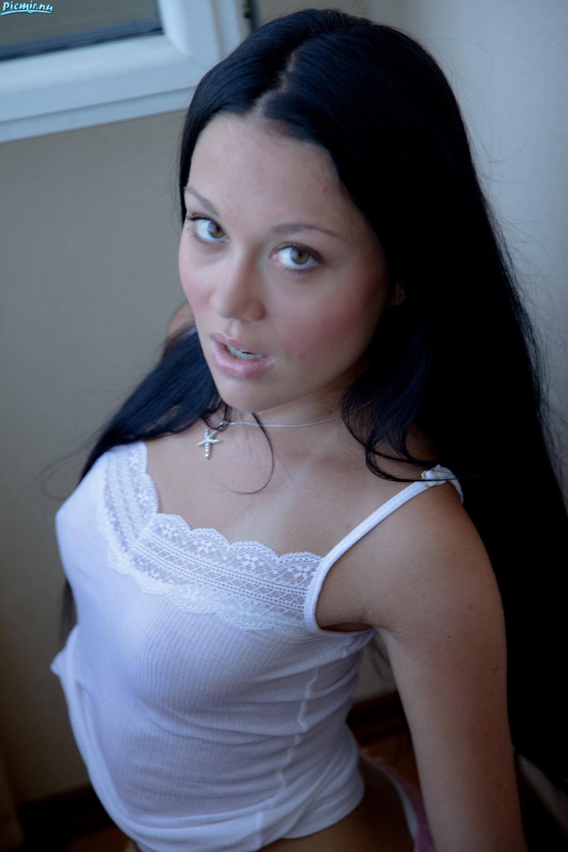 в первой части ниже пояса не увидите теперь о публикации тёмненькая девушка в белой маечке и розовеньких шортиках с кружевами немного решила показать нам женскую красоту и грудь в том числе ну а остальное всё во второй части