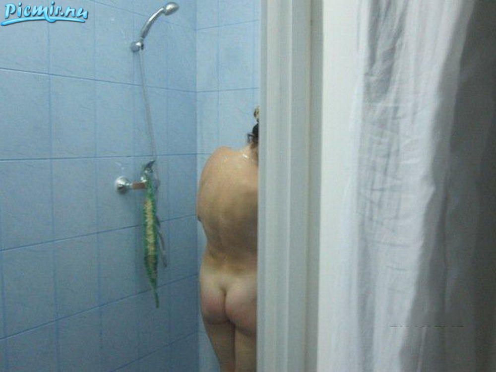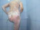 девушка в душевой моется и показывает свои не одинаковые сиси