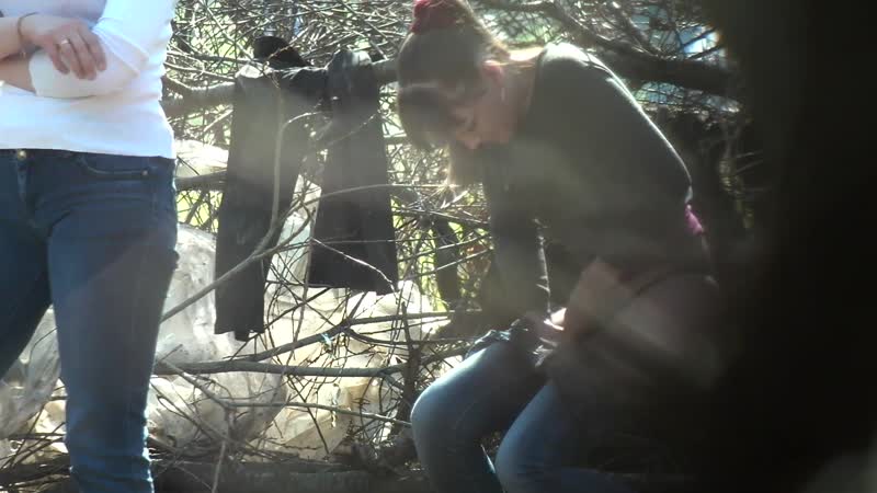 одна писает другая смотрит по сторонам, что бы подругу никто не увидел