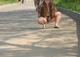 Пышечка, с интимным пирсингом, не стесняясь демонстрирует свои прелести где ни попадя.