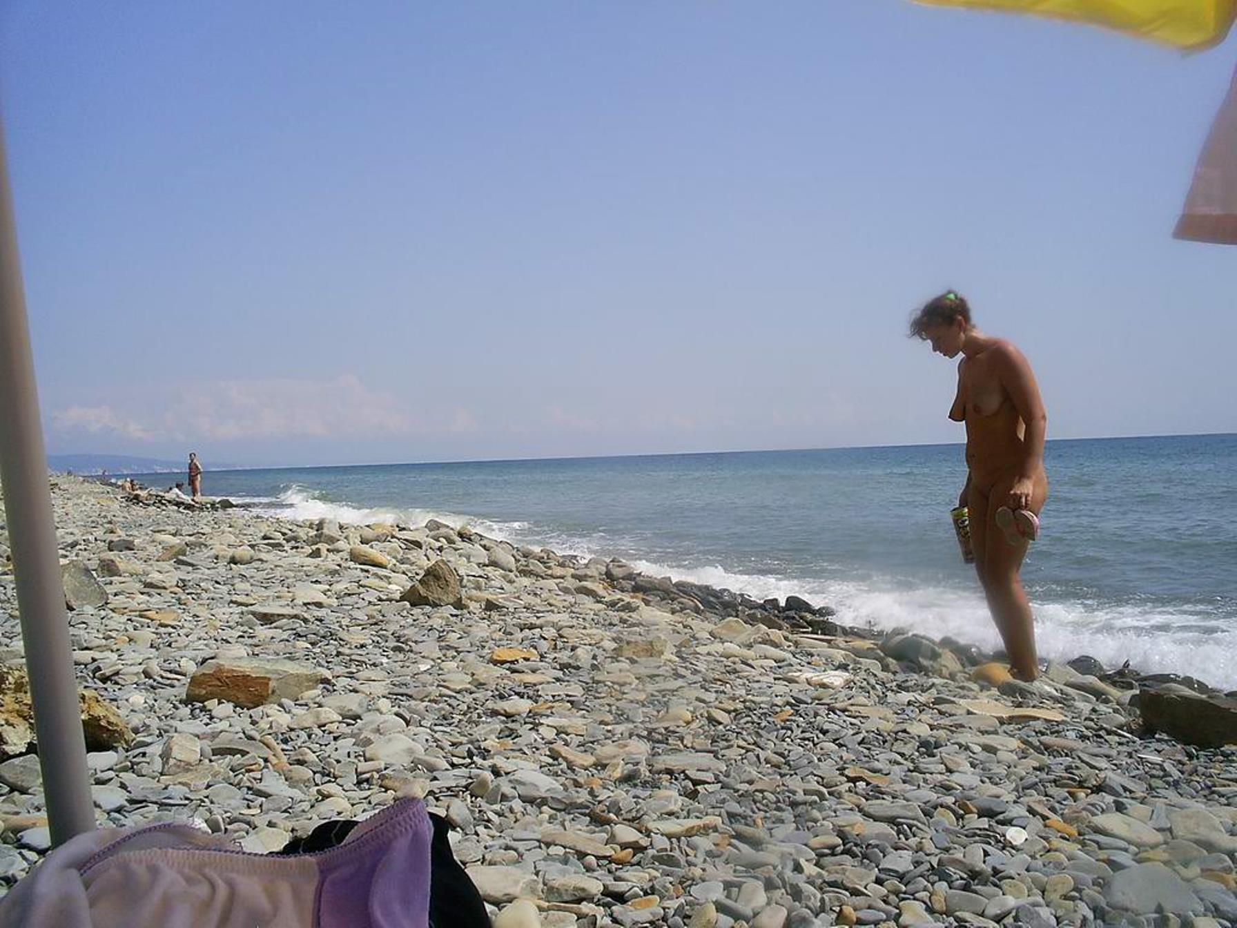 Приятная мамочка. Голенькой на пляже чудесно смотрится
