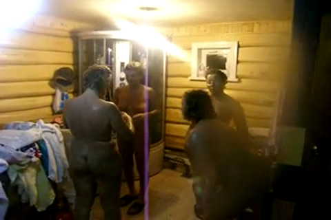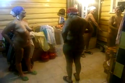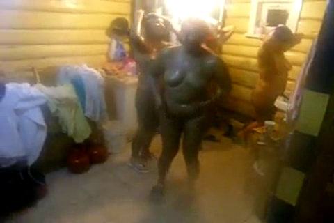 Голые бабы в бане, по всей видимости не совсем трезвые, измазались кокой-то дрянью и устроили шабаш в предбаннике.