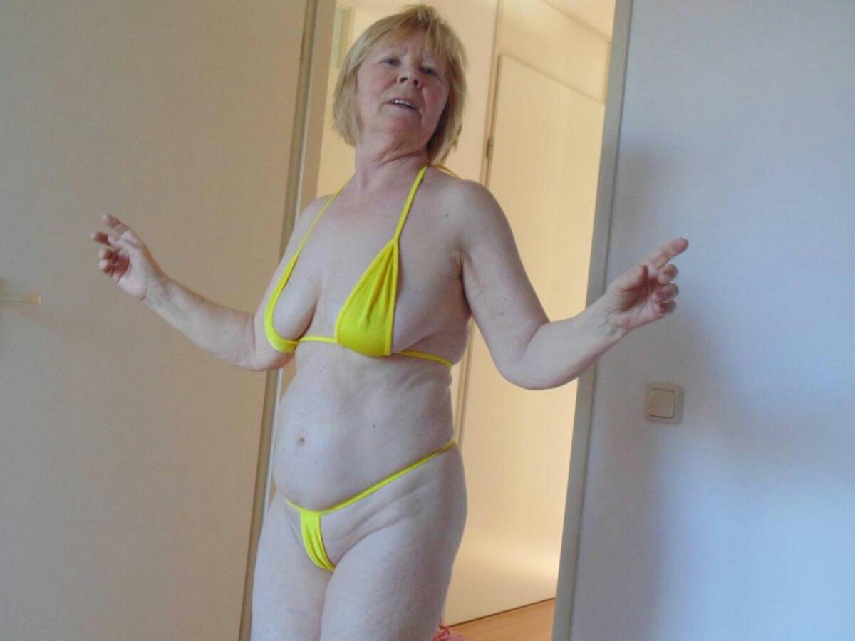 дама в возрасте демонстрирует бикини,тут уж ничего не скажешь,на любителя. Но в принципе...тётка для своих лет выглядит не плохо.