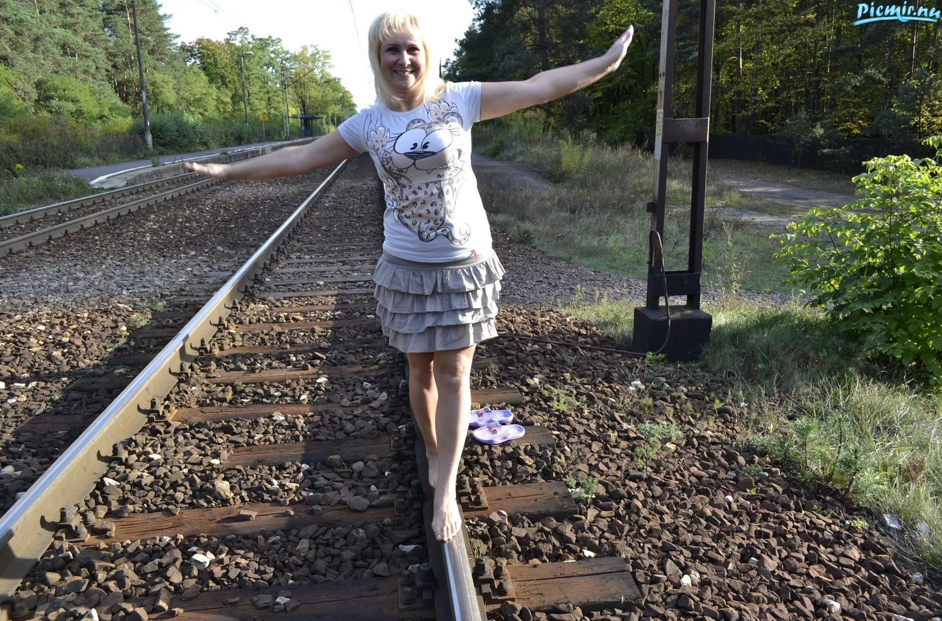 Покрутилась, покрасовалась и потёрлась своей волосатой пиздой о рельс