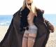 Девушка выбралась к морю когда сезон окончился. Но это не мешает ей демонстрировать себя в холле отеля и на берегу моря.
