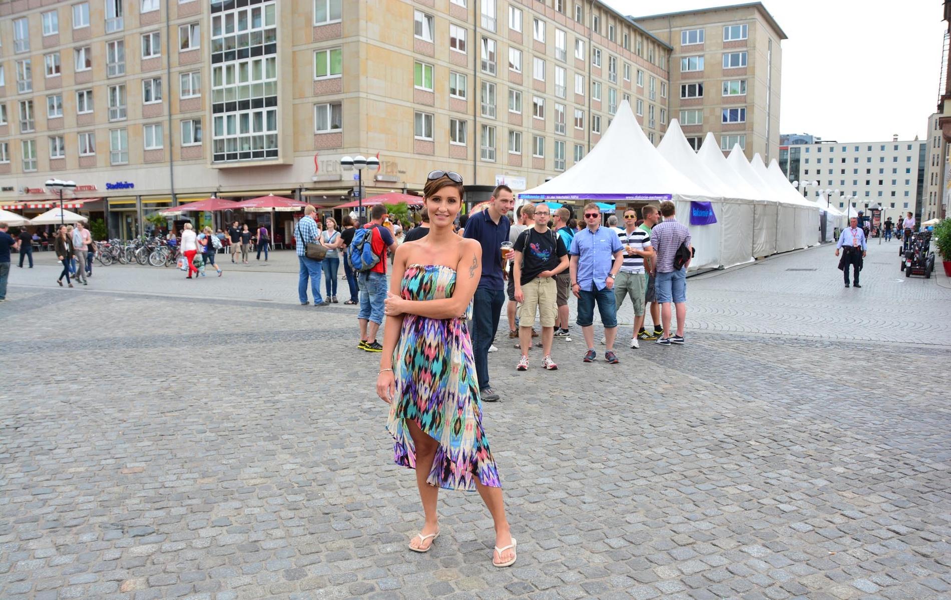 Габи привлекает внимание прохожих своим бюстом и телом в целом.
