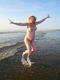 довольно милая беременная женщина бегает прыгает да и просто придуривается в воде