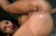 Пленница лежит на спине, а мучитель забрасывает ей руки до плеч и, в таком положении привязывает их, как и руки к настилу. Он ебет её во все дырки бешено и страстно, по-звериному.