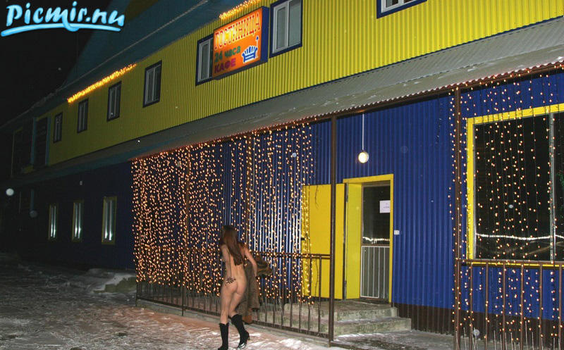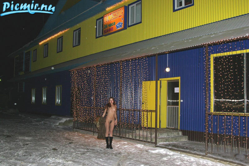 Просто так сходить в кафе не интересно, девочка вначале намотала пару кругов голяка вокруг кафешки, а потом уже пошла чтобы согреться горячим кофе...