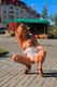 Красивая рыжеватая сосочка, позирует своему соучастнику с фотиком на людной улице. Трусов и лифа у неё нет и, все прохожие смотрят на неё, а один чувак на машине даже остановился, чтобы не въебаться во что-нибудь!