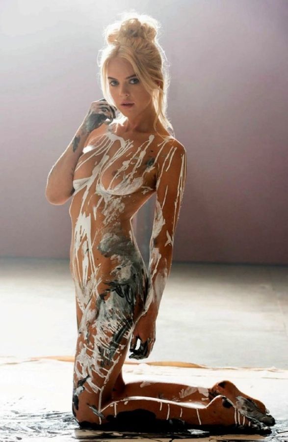 Довольно талантливо она свое стройное тело красками пачкает!