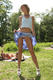 Девушка без трусов позирует на поляне, вблизи отдыхающих рядом людей.