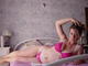 Молодая красивая девушка в красивом нижнем белье и прекрасных позах позирует мужу.