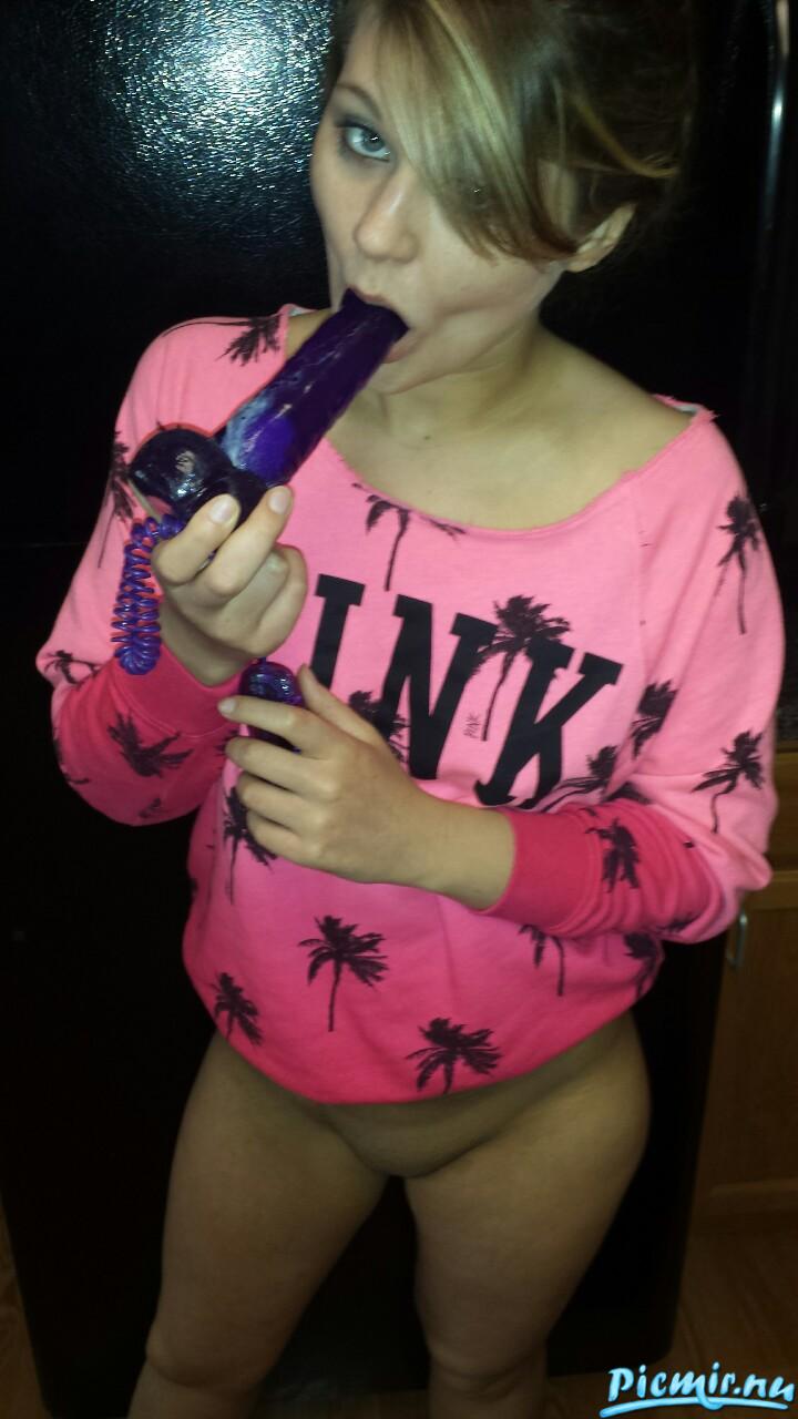 Какая хорошенькая и фалос у ней красивый в руках