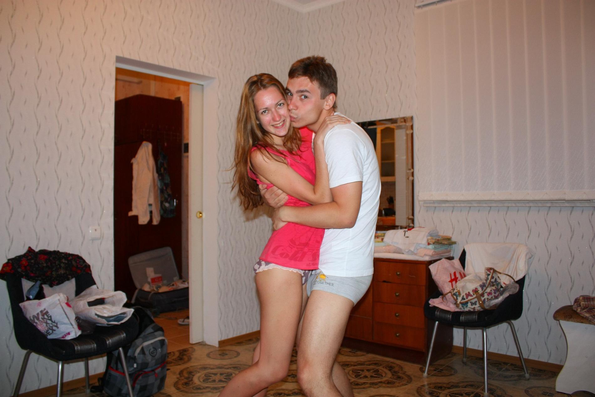 молоденькая сексуальная девушка , позирует нам со своим парнем.