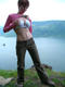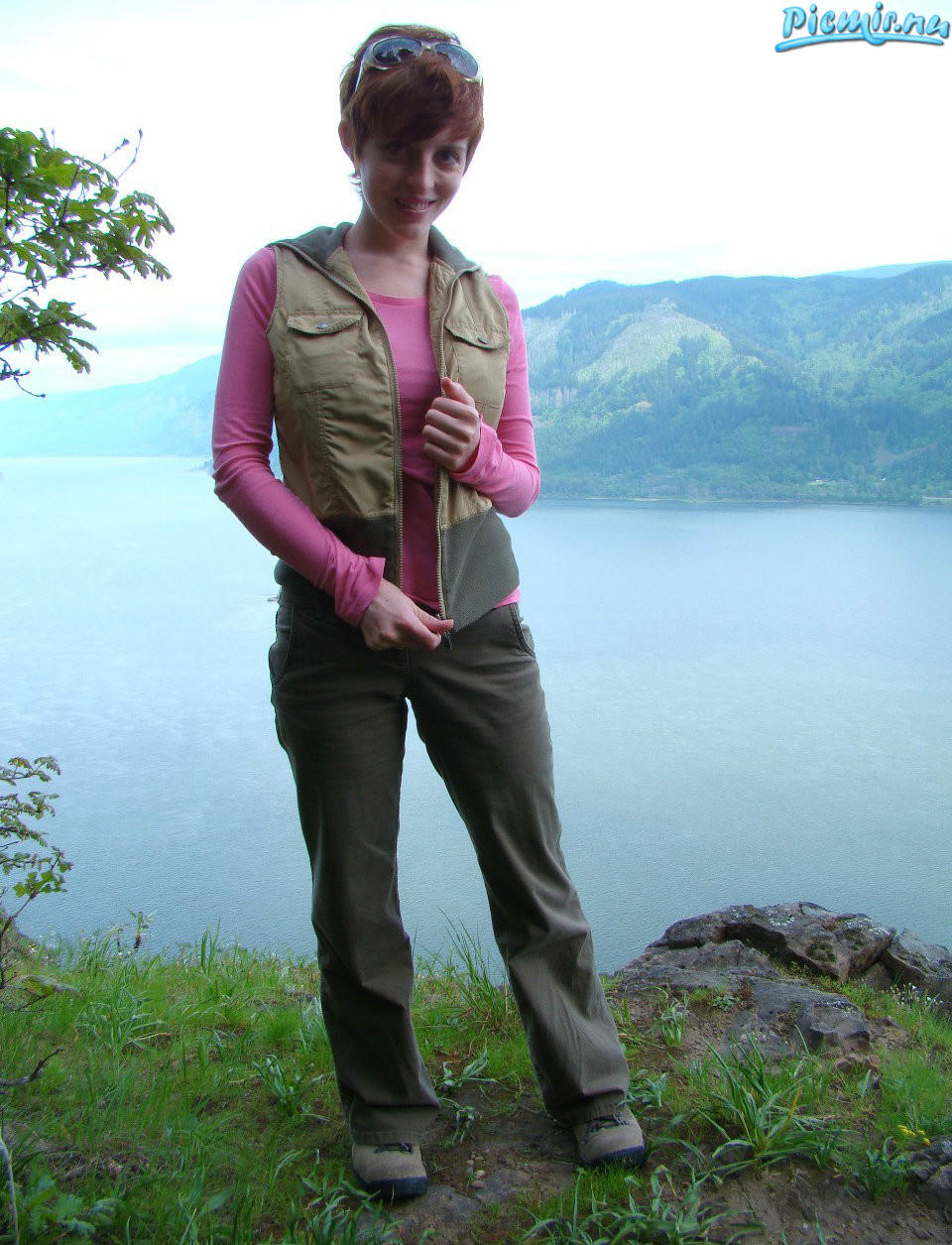 Рыжая девочка на берегу озера показала свои прелести. Хорошие сиськи и пушистая пизда