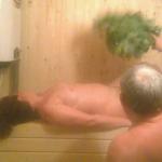 А потом этот товарищ с седой головой но с юным сердцем попросил разрешения попарить мою жену, нравится она ему , давно , я разрешил но контролировал через стеклянную дверь , но это уже другая фотосессия .