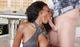 Негритянка с большой грудью и увесистой попкой насаживается на белый член.