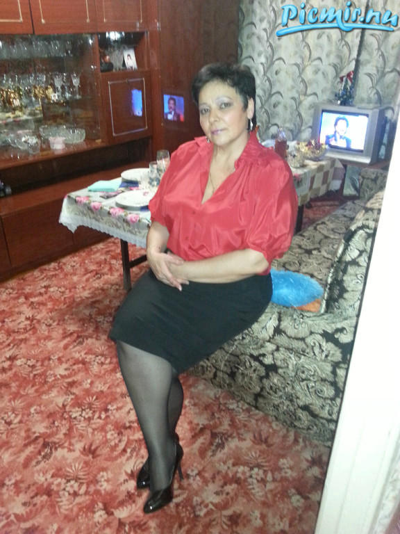 Алая блузка - просто огонь! И на первой фотке подумалось, а что она у тёщи в квартире делает? Похожая расстановка и мебель.