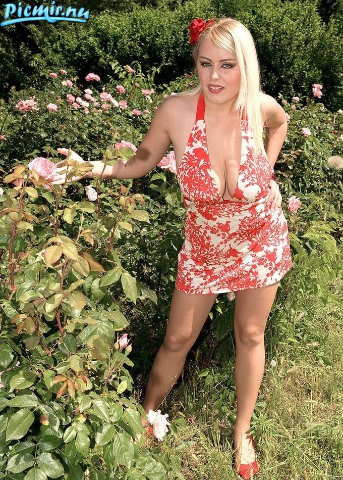 Прекрасное тело девушки с обалденной грудью среди розария не только волнует и возбуждает,но и удивительно гармонирует с чудесными цветами!