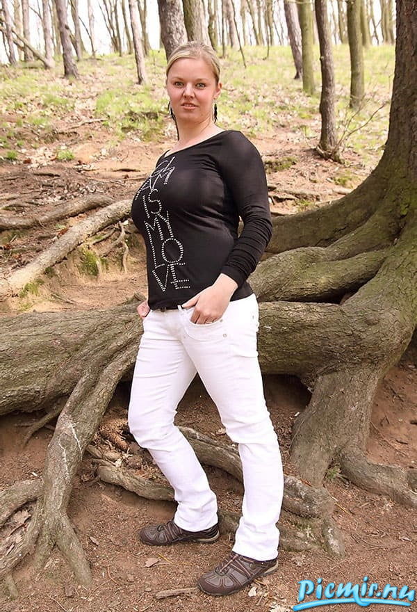 Клёвая грудь у пухляшечки позирующей в осеннем парке!