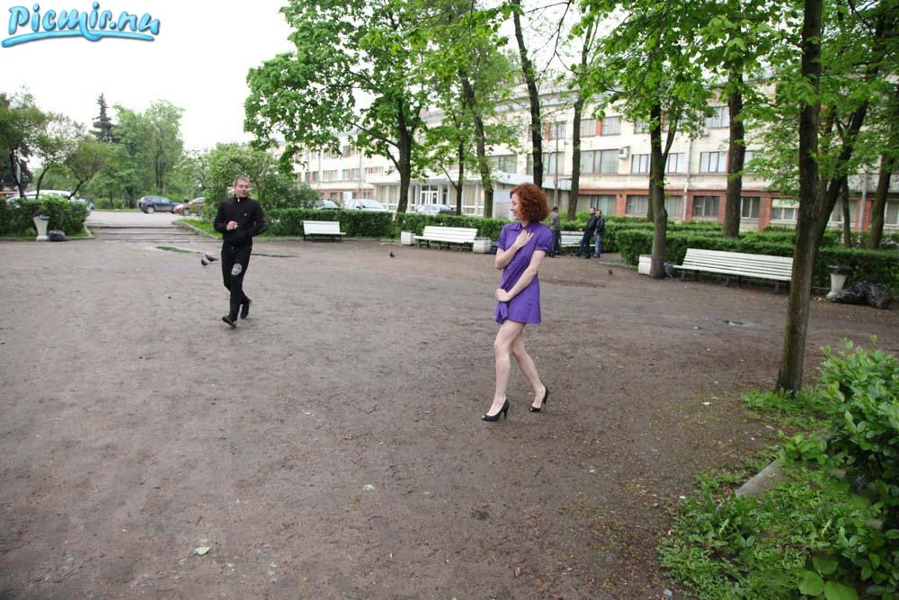Рыжая-безстыжая девочка вышла прогуляться, проветрить свои прелести и шокировала проходящего мимо пацана...
