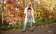 И сама его рукой направляет. А белый плащ на фоне этого осеннего великолепия смотрится отлично.