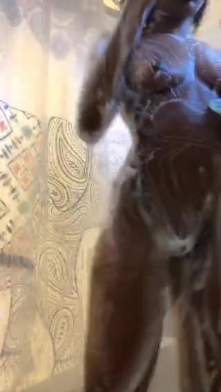 чёрная молодая девушка снимает видео как она моется