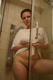 Роскошная женщина не снимая футболки решила помыться под душем.