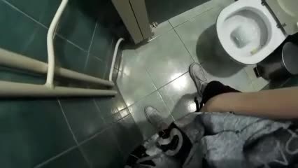 Девушка мастурбирует в общественном туалете и снимает на камеру