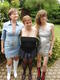 три подруги позируют в парке