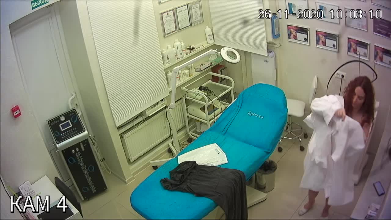 Возбуждающе переодевается косметолог на своём рабочем месте!