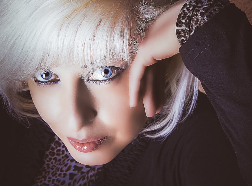 Ух какие глаза. Какой взгляд. Очень сексуальная блондинка