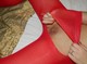 Красные колготки на голое тело придают вульгарность и сексуальность
