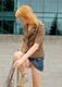 Красиво рыженькая девица демонстрирует свою киску во время прогулки.
