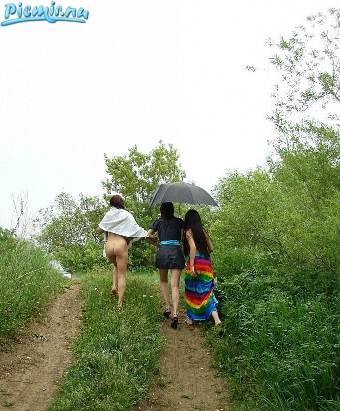 Три весёлые подружки позируют на фоне природы и малость прикалываются...