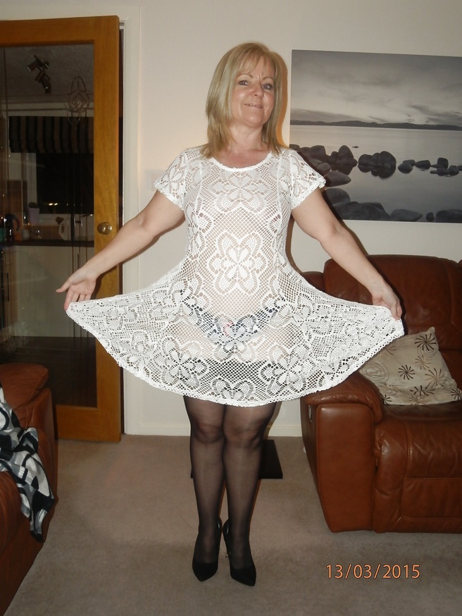 Сама то она хороша, но вот белое платье и черные трусики и чулки это моветон.