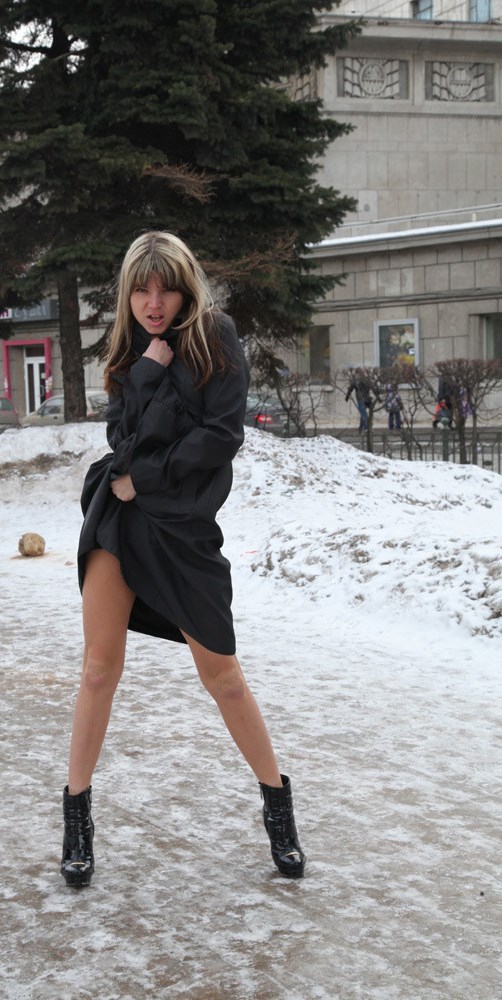 Оно хоть и тёплое, но всё равно зима и барышне было не жарко.