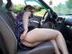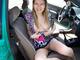 Что-то она робка очень... Едва подол приподняла - и сразу полезла в машину прятаться.