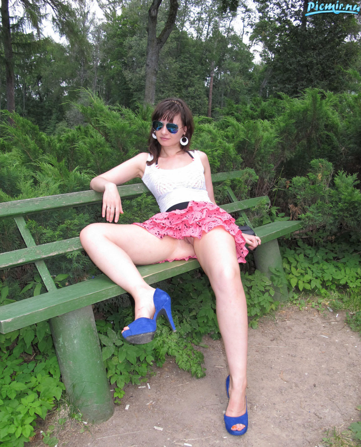 Девочка в летнем сквере демонстрирует свои аппетитные прелести...