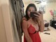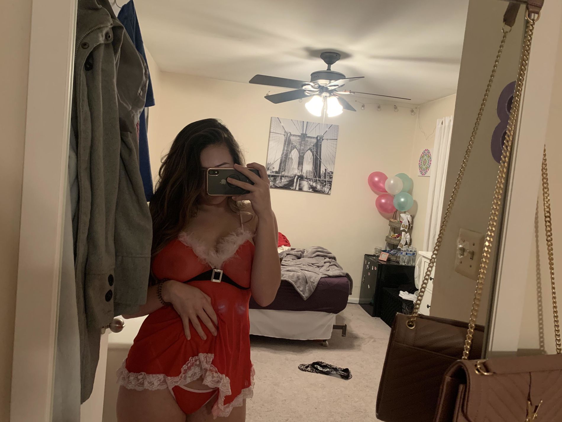 сочная грудастая девица снимает селфи позируя в рождественском белье, и обнажённой