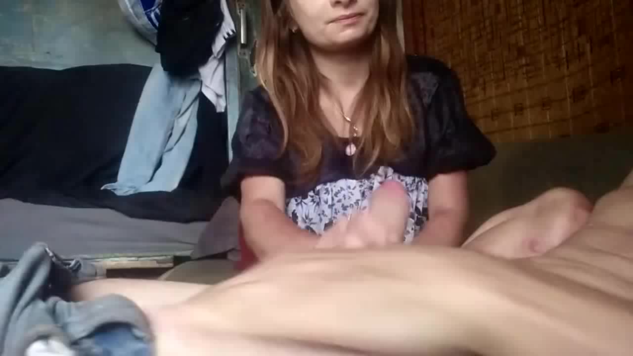 Неплохо ручками работает молодая жена с членом мужа своего!