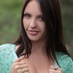 Очень симпатичной на камнях смотрится эта позирующая обнажённая брюнеточка!