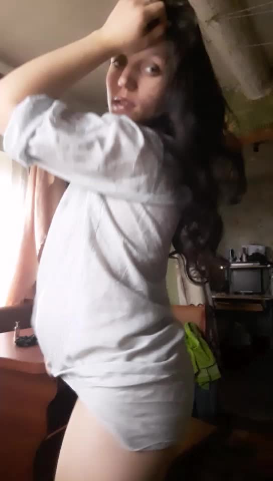 В отличном настроении симпатичная беремка показывает себя пританцовывая!