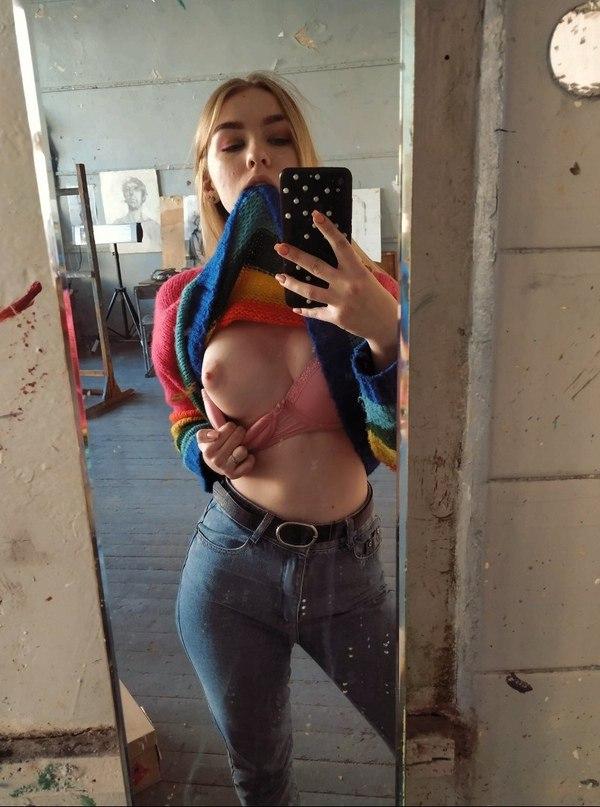 Наверно она устала рисовать и решила расслабиться и поснимать себя красавицу