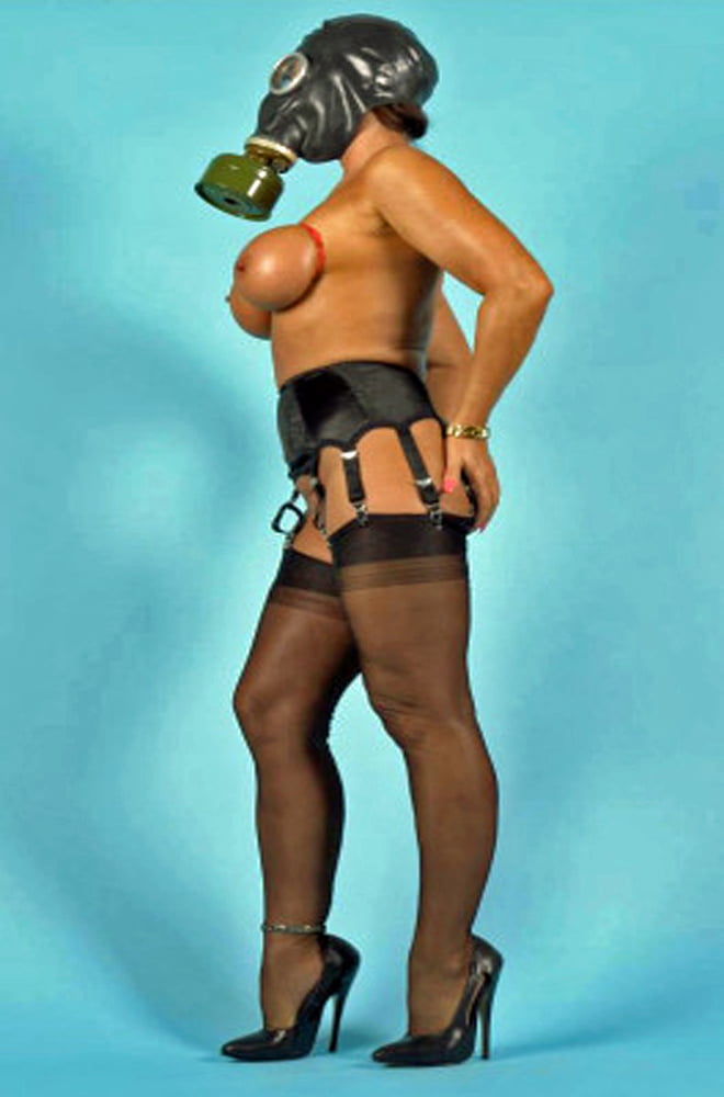 Замечательных форм красотка не плохо смотрится совсем своими прелестями в противогазе