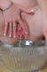 решила пописать в стеклянную вазу.
