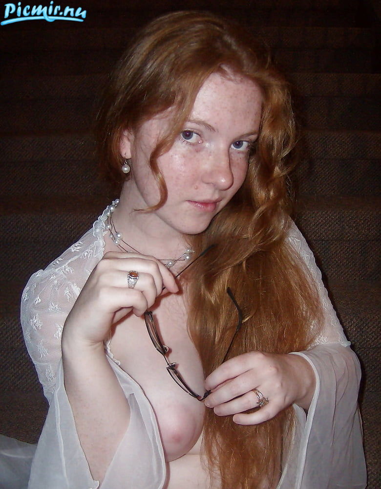 Рыженькая богиня позирует обнаженная как на улице и на дому