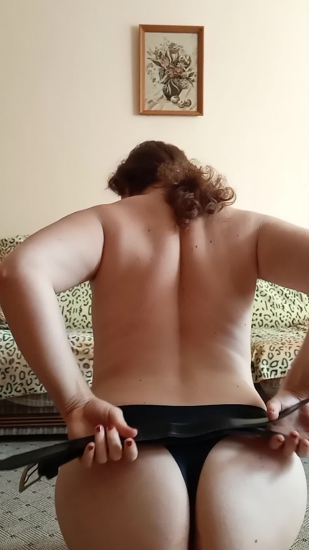 Аня, выполняет задание и наказывает свою попку ремнем