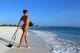Висьма миленькая девочка очень активно и весело отдыхает на морском курорте...